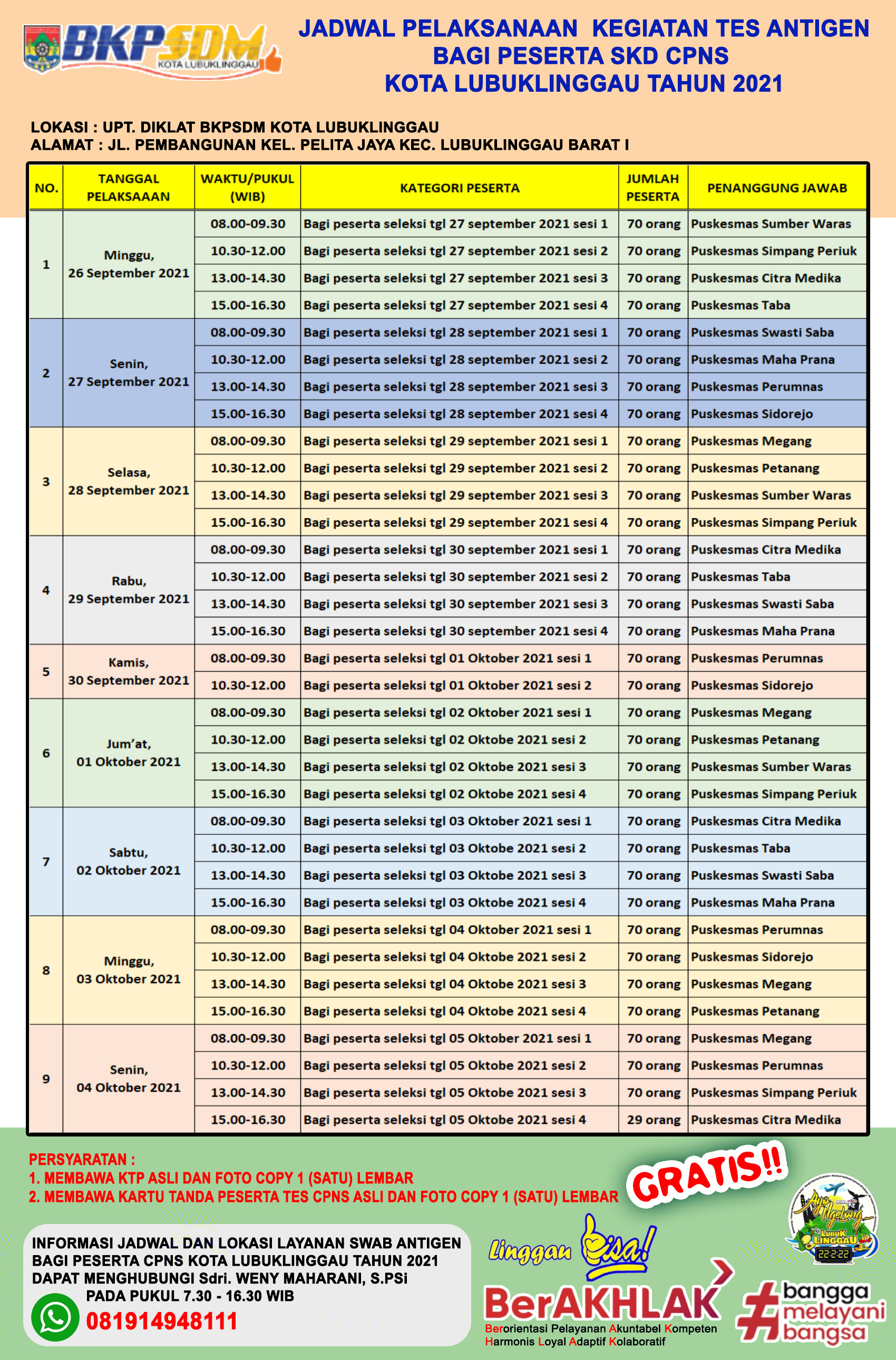 Jadwal Tes Swab Antigen Peserta Tes CPNS Kota Lubuklinggau